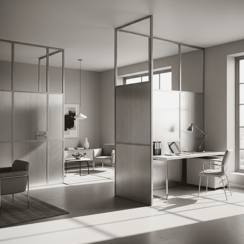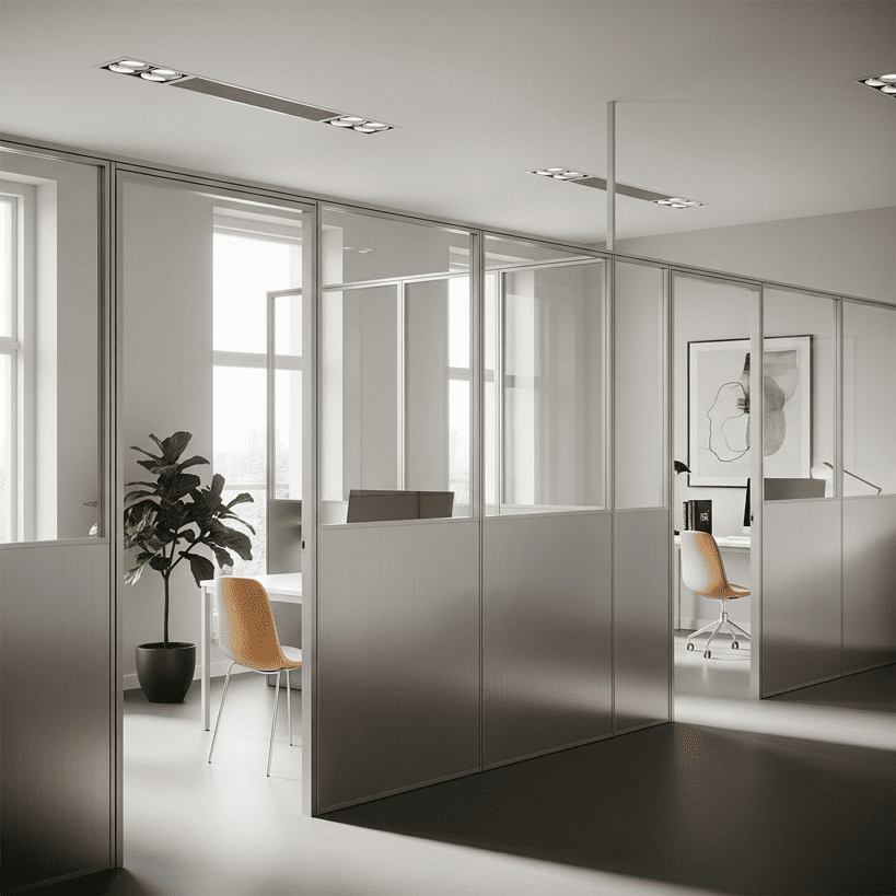 Partisi kantor, kusen aluminium, dan berbagai sistem pembatas ruangan yang ringan, kokoh, dan tahan lama.
